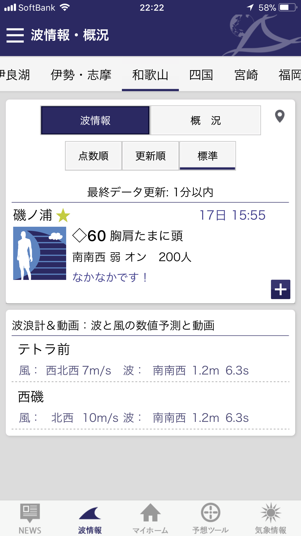 こんにちは!いい波捕まえていますか?今年は、自分の休みの日に限って気温が高く、雪山に行く機会が少ない不思議なシーズンです。昨日もお休みをいただいており雪山に行く予定でしたが、気圧配置や波高を見ると磯ノ浦がサイズアップしそうな予感・・・これはと思い昼前に家を出発し行ってきました。 おおおおおおお!◇60点!こんな数字磯ノ浦であまり出ませんよ!久しぶりにサイズのある波!入った瞬間12時過ぎは最高でした!台風でも無いのに低気圧に向かって吹く南風の威力はすごいですね!